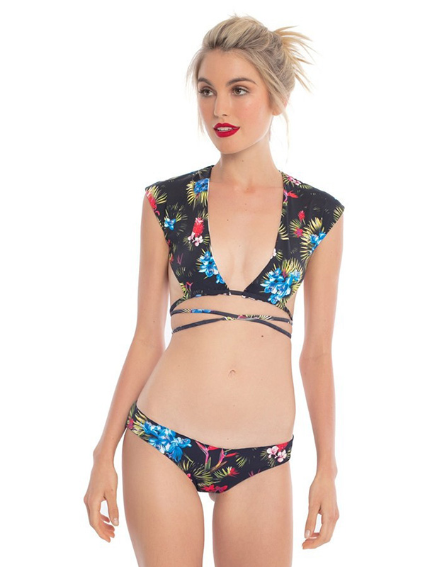 Women Sexy V-neck Vest Tops Floral Bikini Beachwear Black