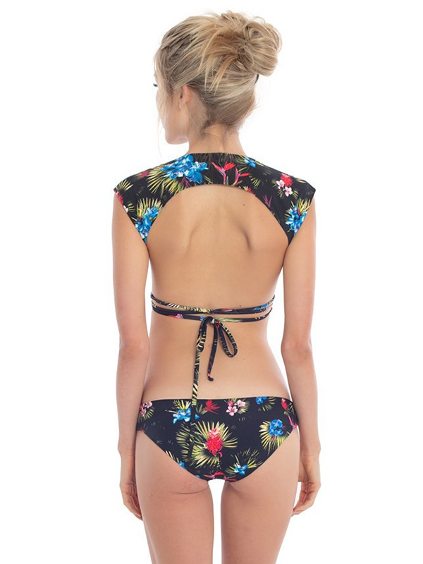 Home » Swimwear » Bikini » Women Sexy V-neck Vest Tops Floral Bikini Beachwear Black