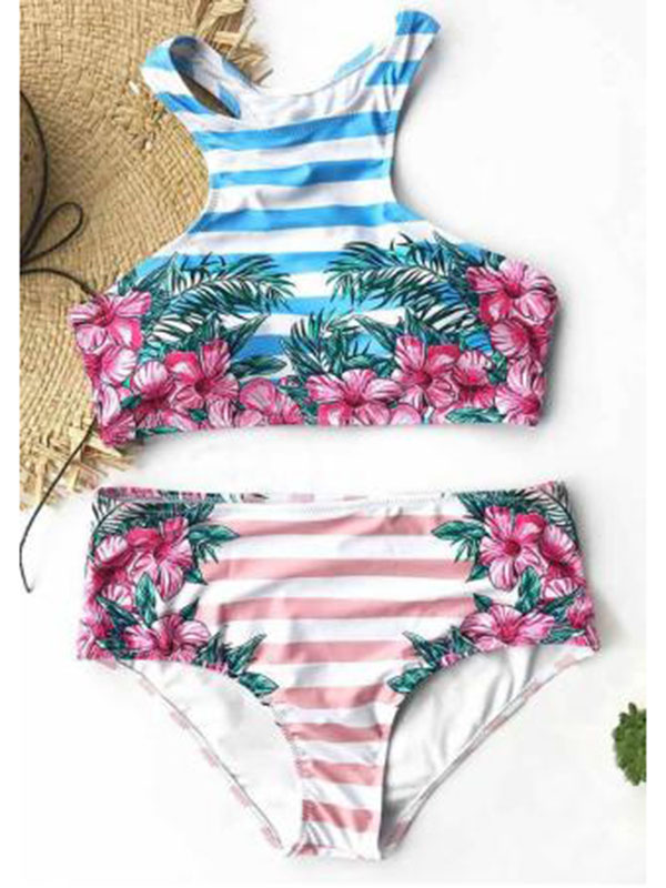 Women Sexy Floral Fitness Bikini Set High Waist