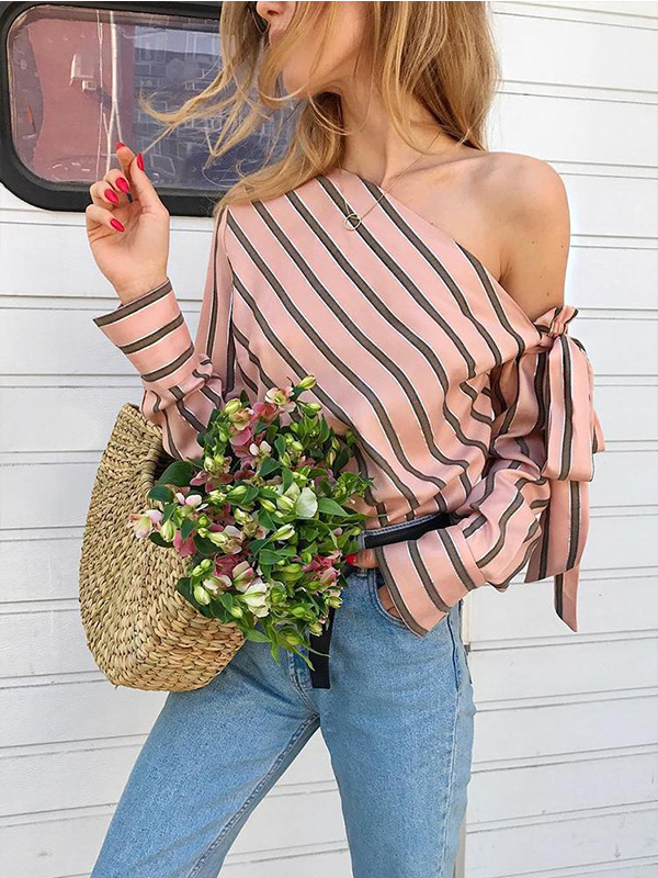 Home » Women Clothing » Tops » Blouses » Women Casual Loose Striped Dress