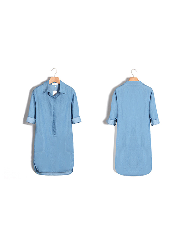 Home » Women's Dresses » Casual Dresses » Women Long Sleeve Light Blue Jean Dress