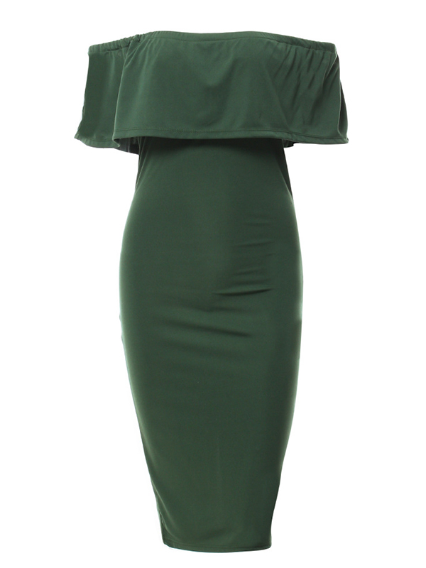 Green Women Off Shoulder Midi Dress