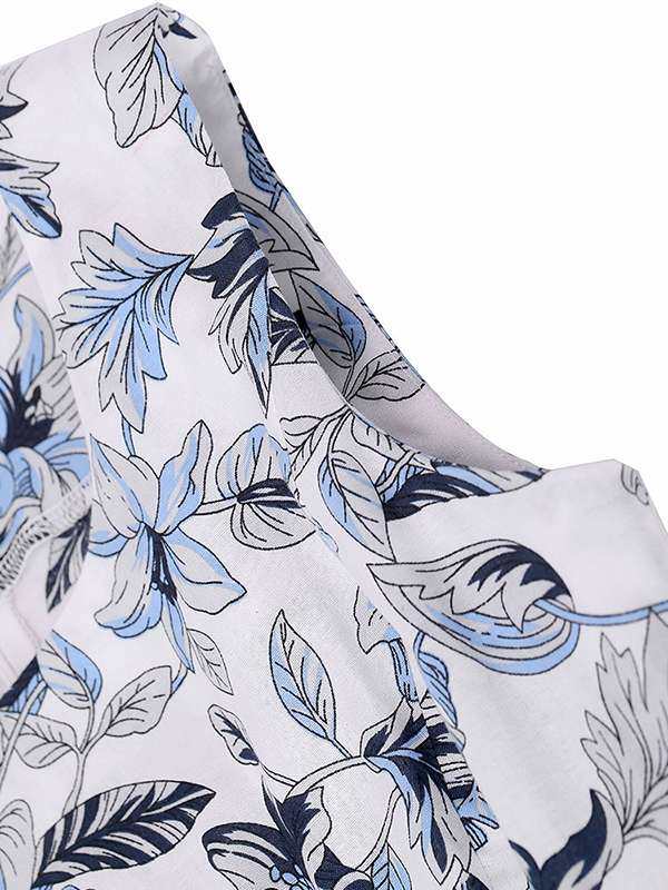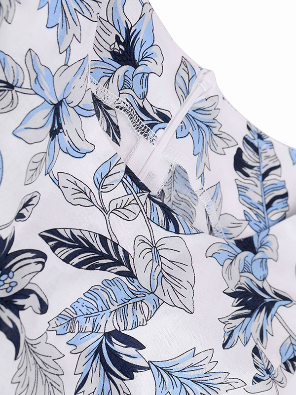 Fashion Floral Printed Blue Casual Dress