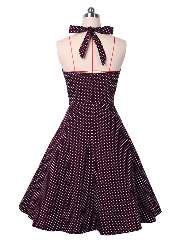 Vintage Dots Red Halter Casual Dress