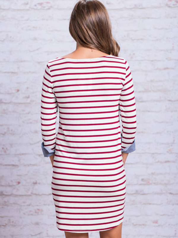 Home » Women's Dresses » Casual Dresses » Scoop Neck Long Sleeve Stripe Dress