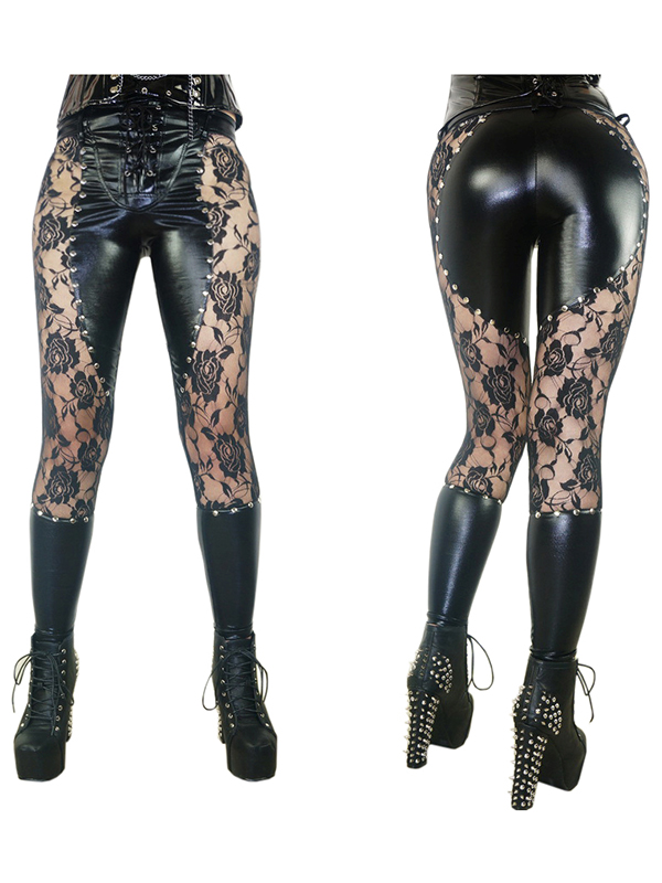 Home » Wet Look & Vinyl Clothing » Vinyl Leggings » Punk Rock Metal Studded Lace Pants