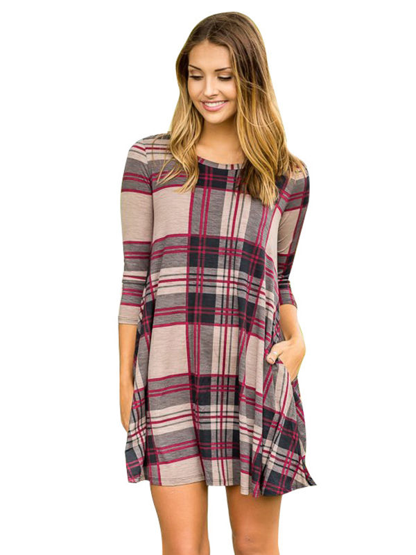 Home » Women's Dresses » Casual Dresses » Fashion Loose Casual Plaid Dress
