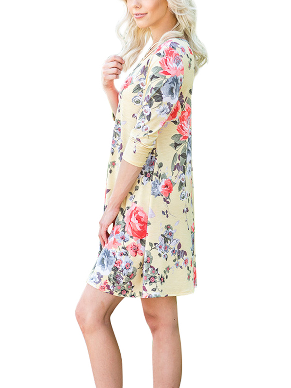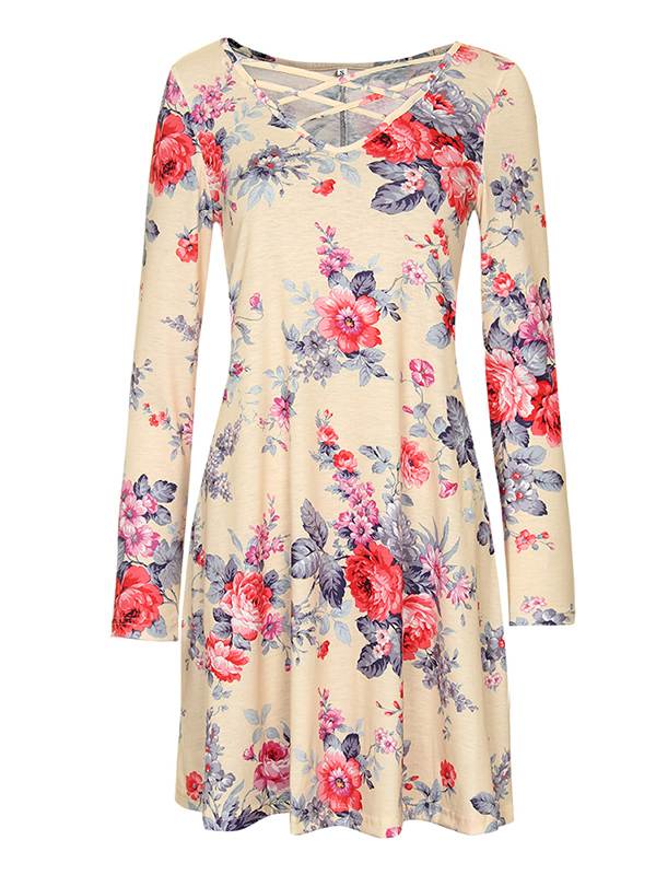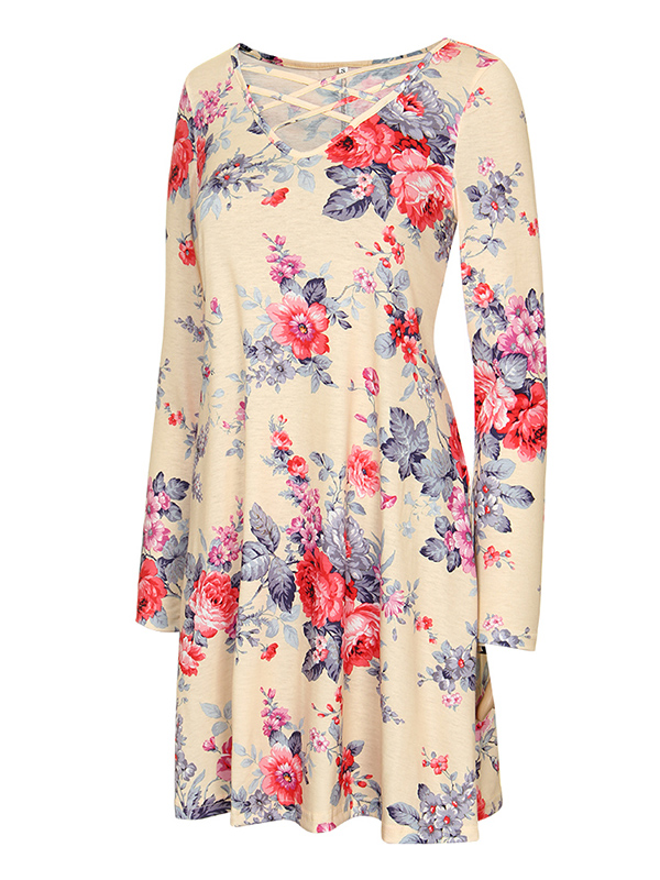 Home » Women's Dresses » Casual Dresses » 2 Colors S-XL Lace-Up Floral Casual Dress