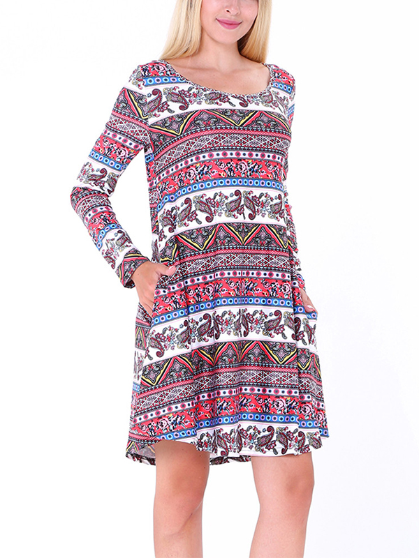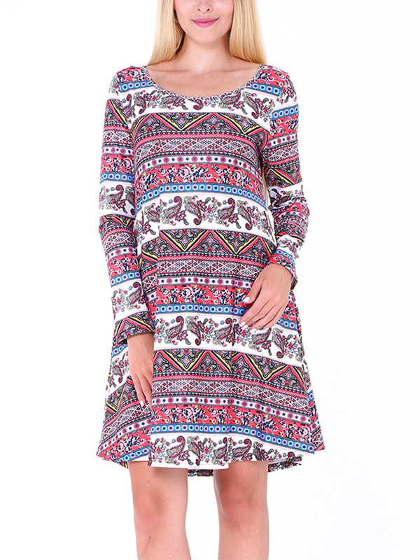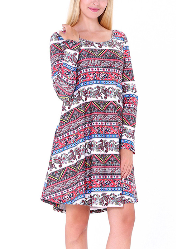 Home » Women's Dresses » Casual Dresses » Purple S-XL Warm Printed Flared Casual Dress