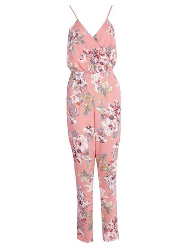 Home » Jumpsuit & Romper » Jumpsuit » Pink S-XL V-Nevk Straps Floral Jumpsuit