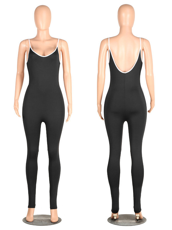 Home » Jumpsuit & Romper » Jumpsuit » Black Polyester Striped Skinny Jumpsuits