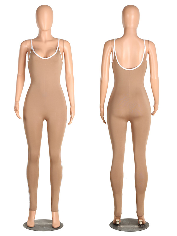 Home » Jumpsuit & Romper » Jumpsuit » Apricot Polyester Striped Skinny Jumpsuits