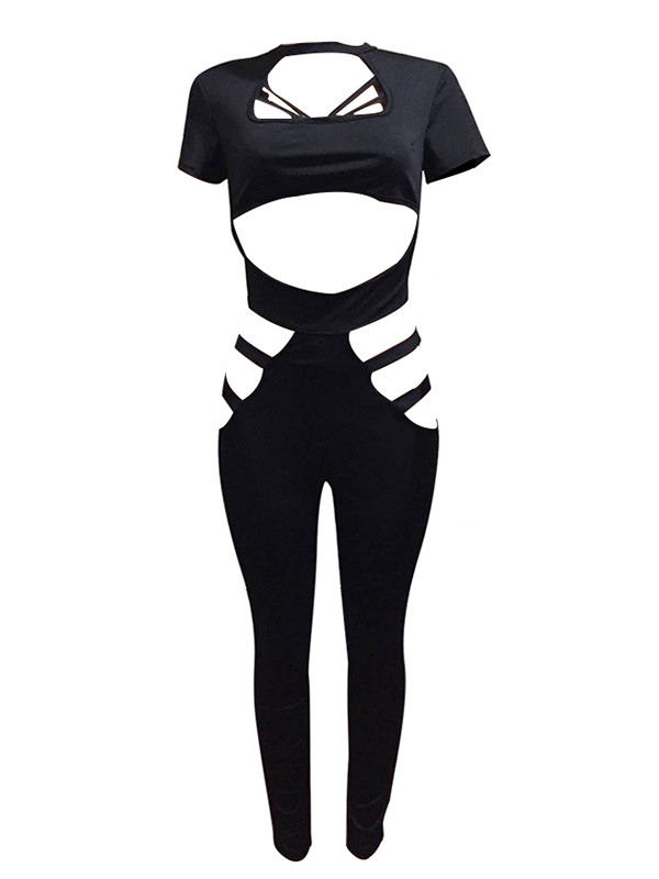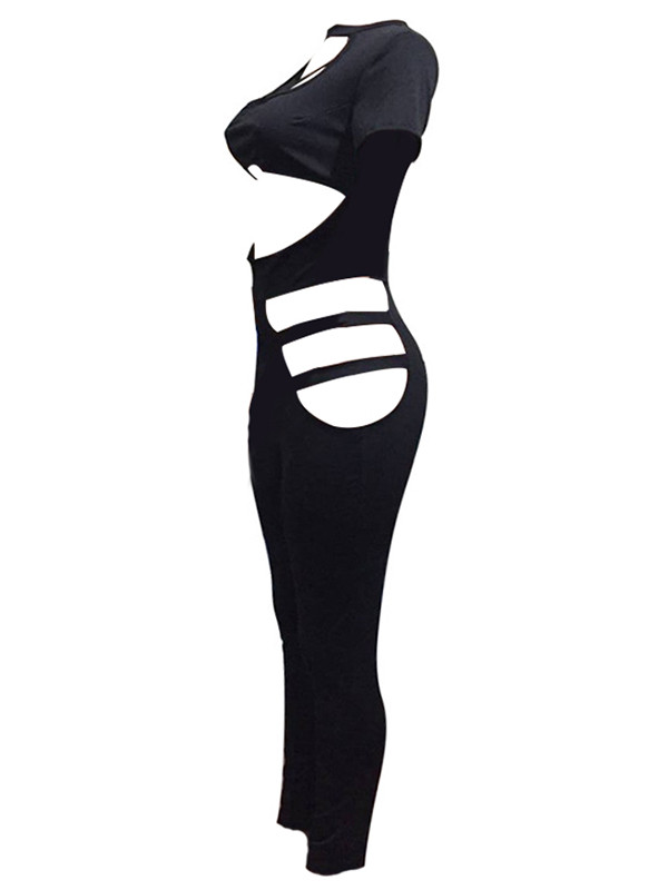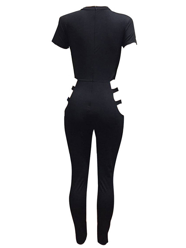 Black Round Neck Hollow-out Jumpsuits