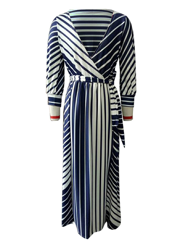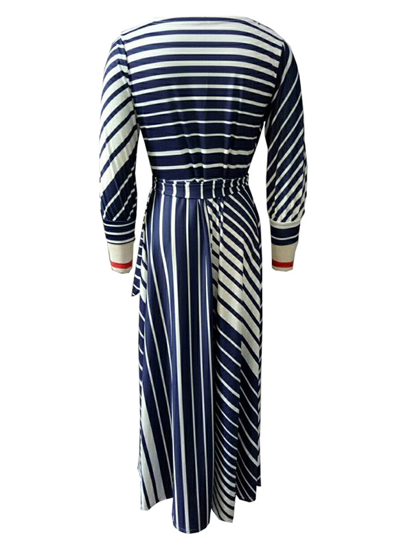 Home » Women's Dresses » Casual Dresses » Dark Blue Stripe Printed Ankle Length Casual Dress