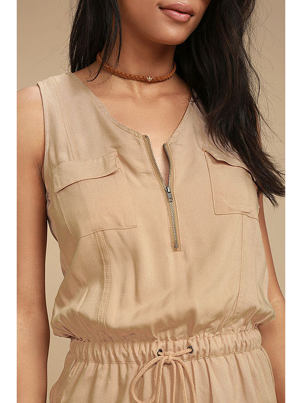Home » Jumpsuit & Romper » Romper » Apricot Lucky Zipper Sleeveless Romper