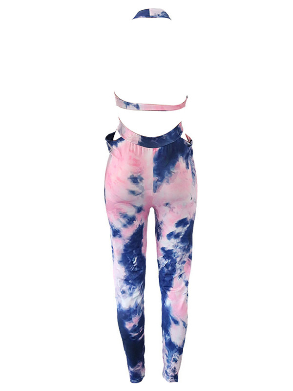 Sexy Printed Hollow-out Polyester One-piece Jumpsuits