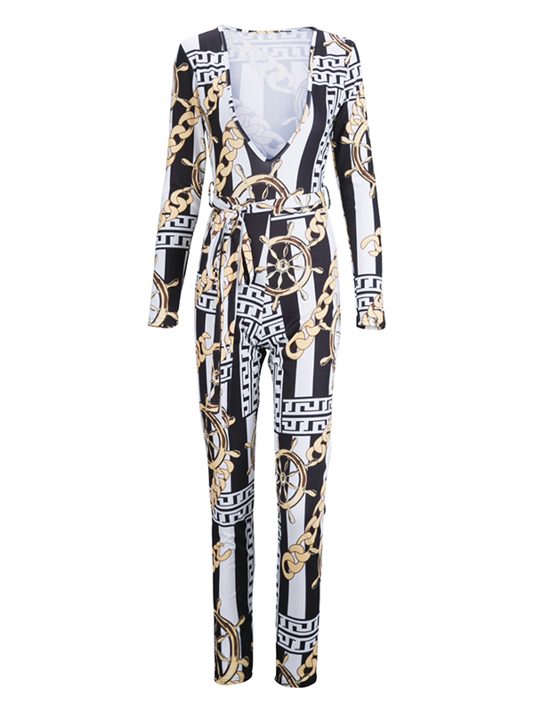 Home » Jumpsuit & Romper » Jumpsuit » Stylish Deep V Neck Print One-piece Jumpsuits