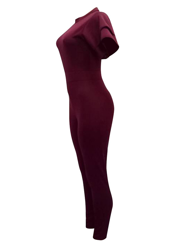 Home » Jumpsuit & Romper » Jumpsuit » Wine Red Round Neck Lotus Leaf Sleeves Jumpsuits