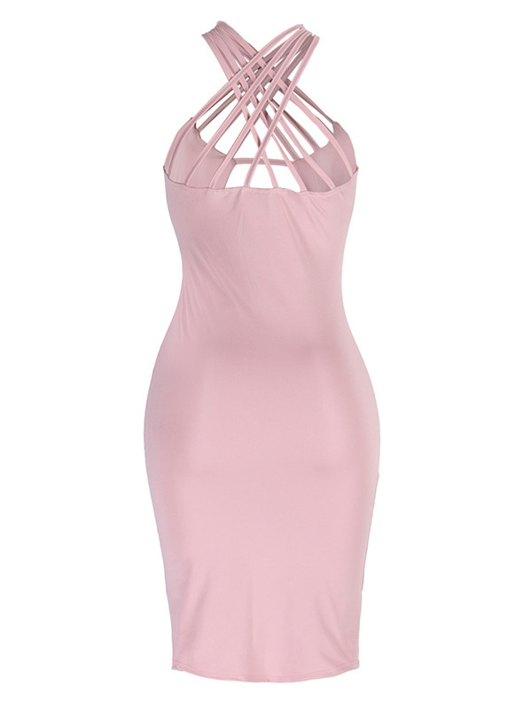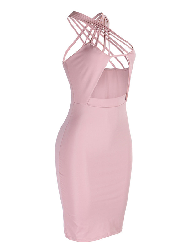 Home » Women's Dresses » Bodycon Dresses » Pink Hollow-out Knee Length Bodycon Dress
