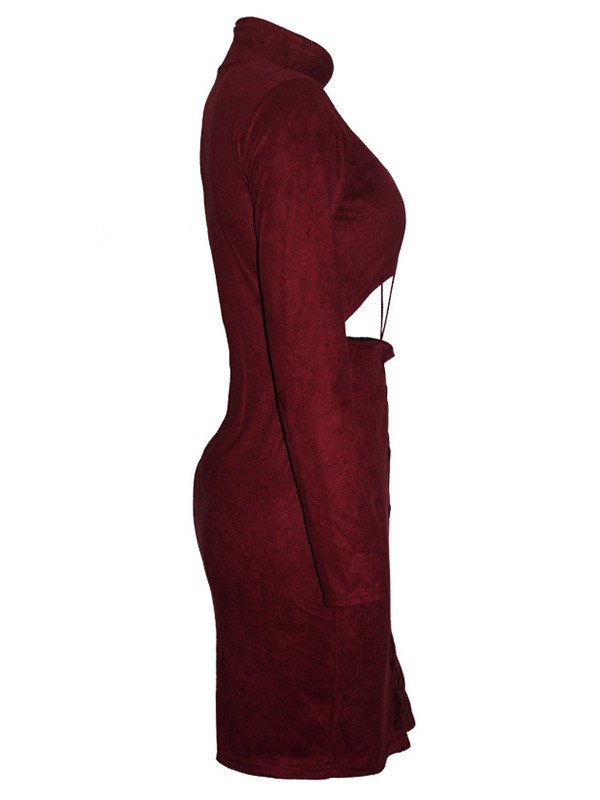 Wine Red Lace-up Hollow-out Bodycon Dress