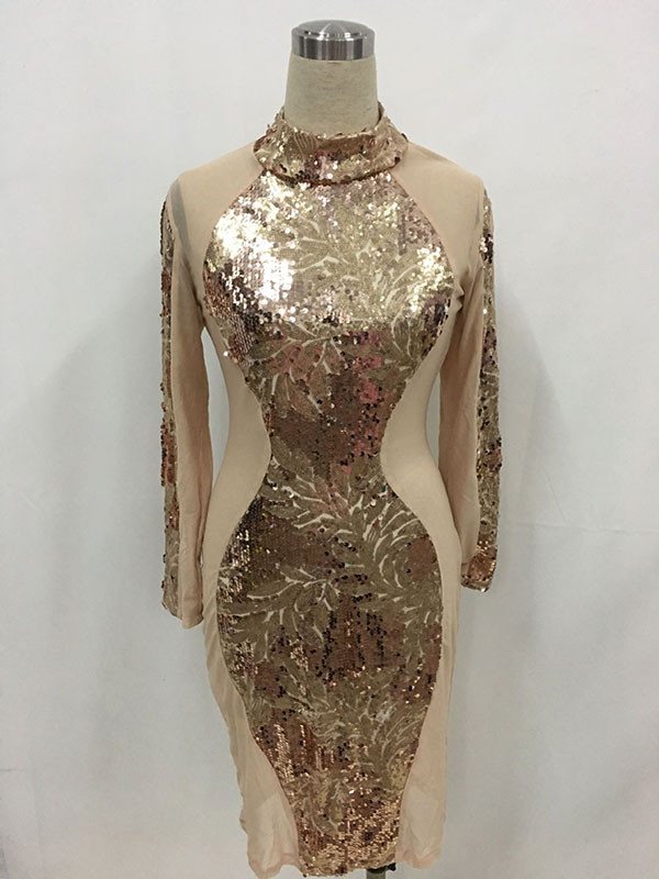 Home » Women's Dresses » Bodycon Dresses » Sexy Patchwork Sequined Decorative Bodycon Dress
