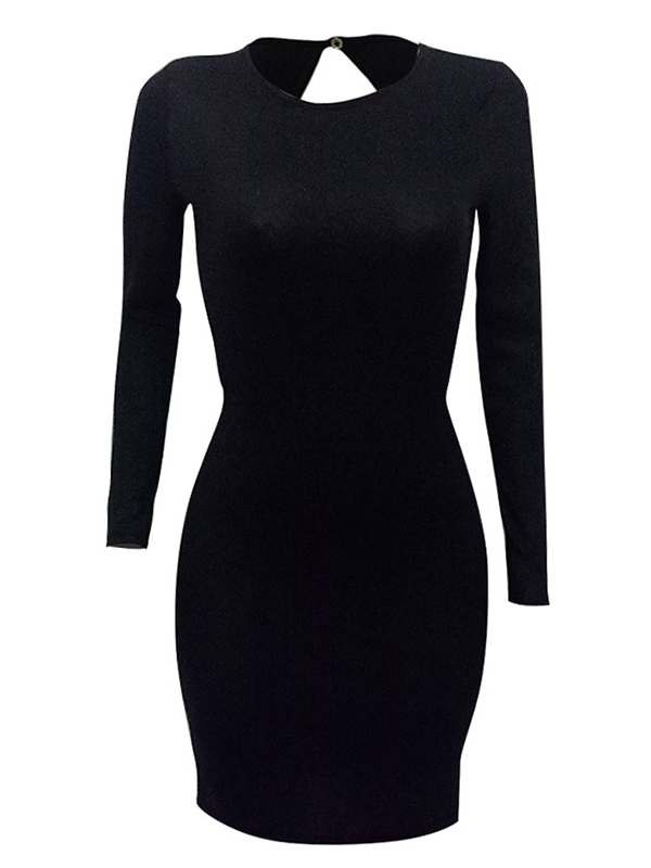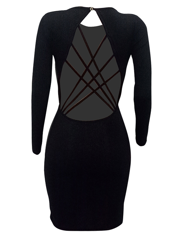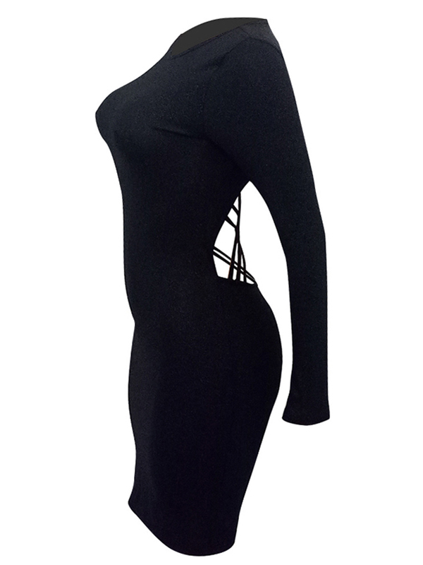 Home » Women's Dresses » Bodycon Dresses » Black Round Neck Lace-up Hollow-out Bodycon Dress