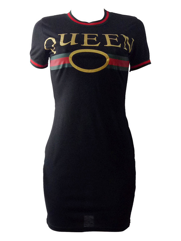 Home » Women's Dresses » Casual Dresses » Black Round Neck Letters Printed Casual Dress