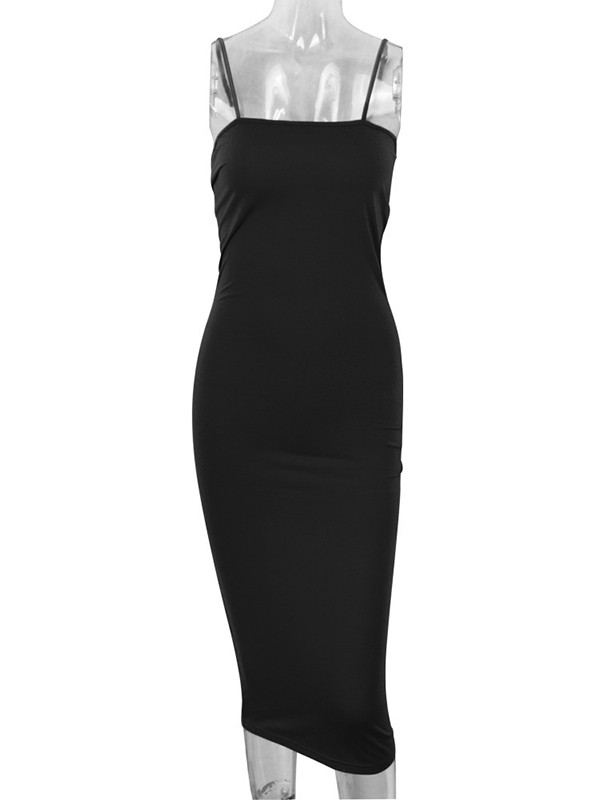 Home » Women's Dresses » Midi Dresses » Black Sexy Spaghetti Strap Sleeveless Midi Dress