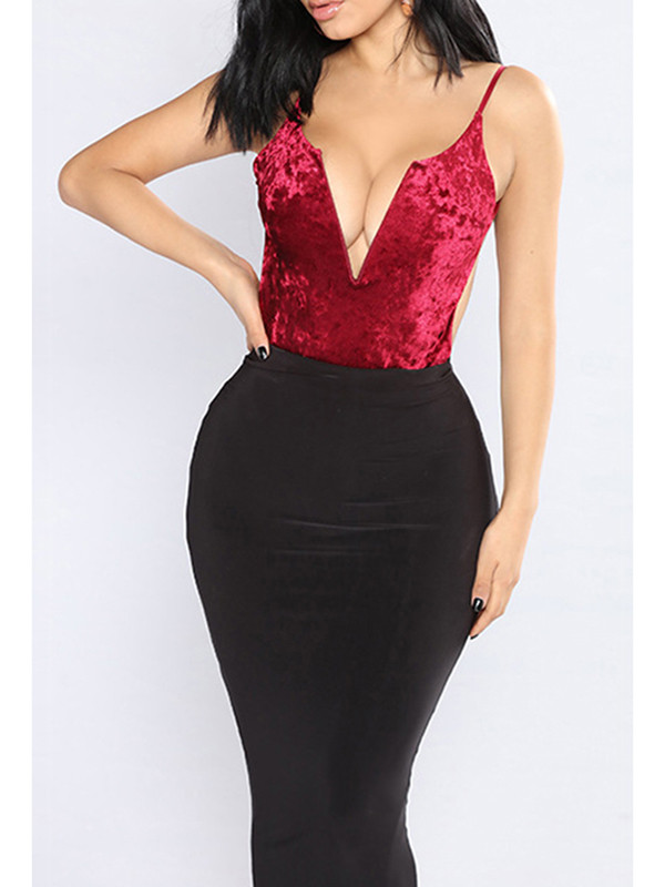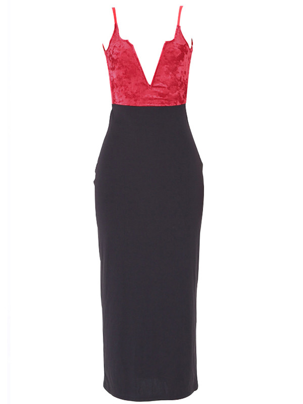 Home » Women's Dresses » Bodycon Dresses » Sexy V Neck Patchwork Wine Red Dress