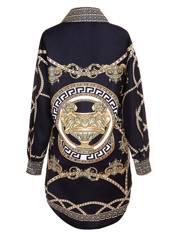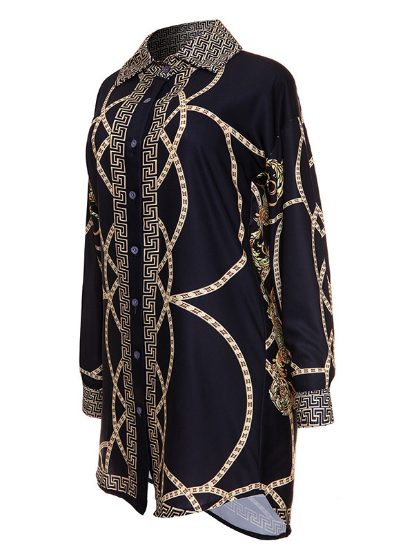 Home » Women's Dresses » Casual Dresses » Black Trendy Turndown Collar Printed Dress