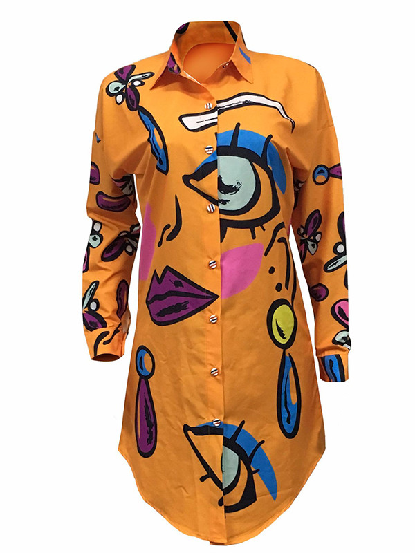 Home » Women's Dresses » Casual Dresses » Orange Trendy Turndown Collar Printed Dress