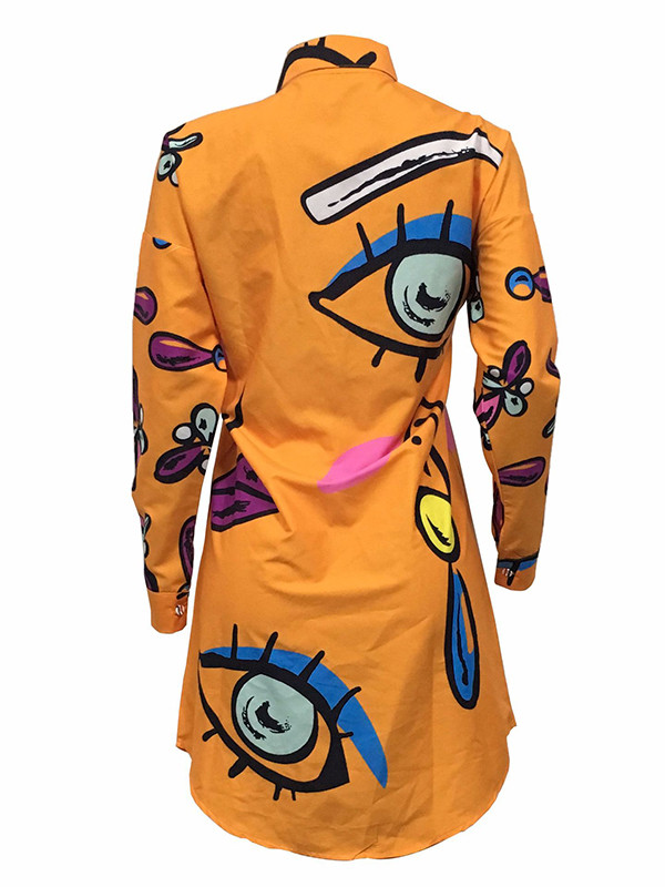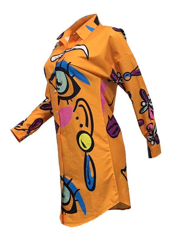 Orange Trendy Turndown Collar Printed Dress