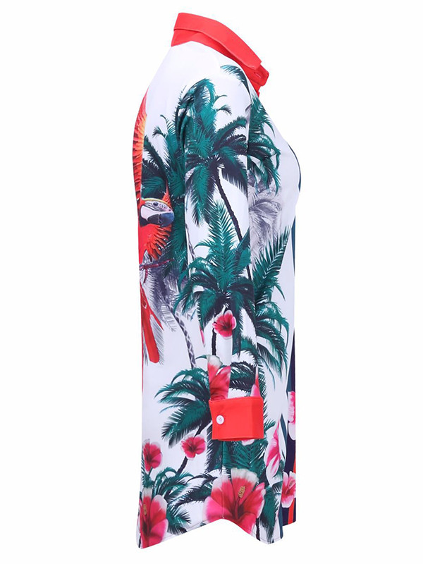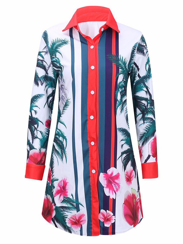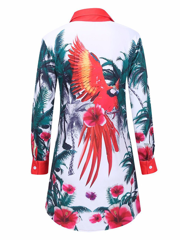Home » Women's Dresses » Casual Dresses » White Turndown Collar Printed Patchwork Dress