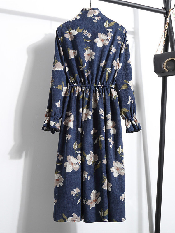 Home » Women's Dresses » Casual Dresses » Dark Blue Stand Collar Long Sleeve Dress
