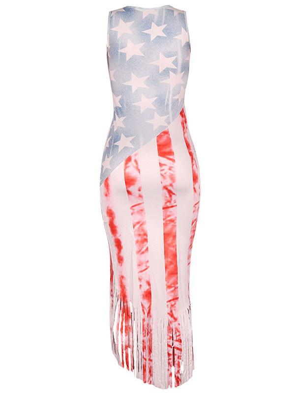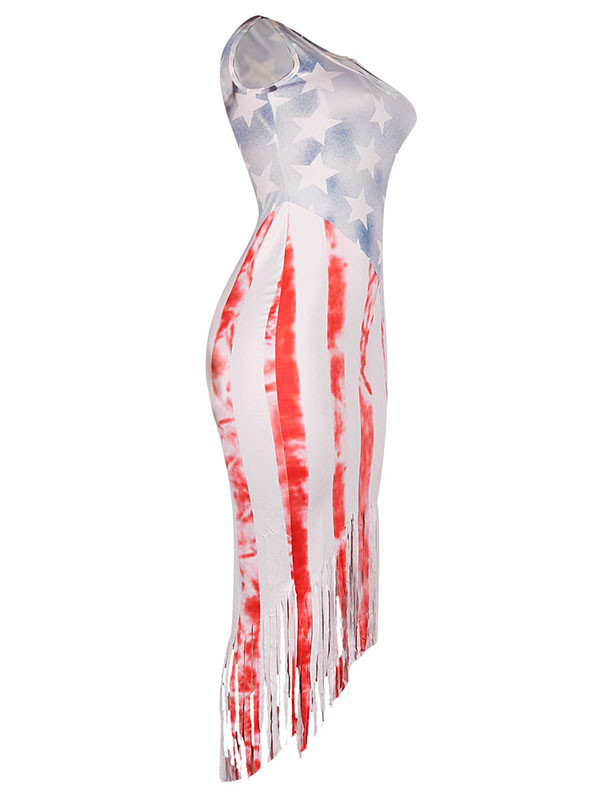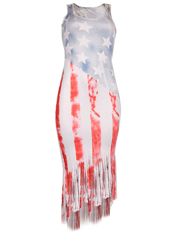 » Women's Dresses » Midi Dresses » Euramerican Sleeveless National Flag Printed Qmilch Mid DressModel Show: