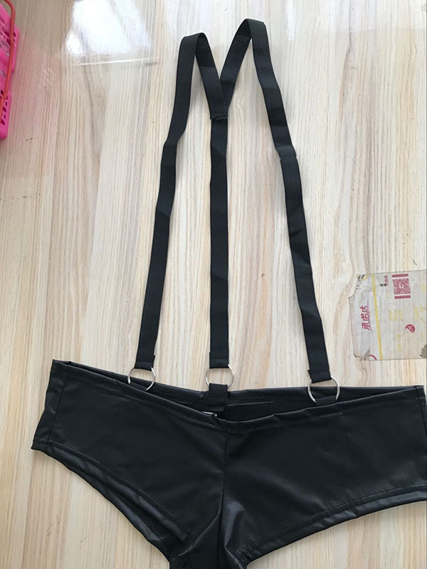 » Wet Look & Vinyl Clothing » Vinyl lingerie Set » Two Straps Backless Patent Leather Women Teddies LingeieModel Show