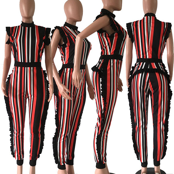 Home » Jumpsuit & Romper » Jumpsuit » Orange Sleeveless Ruffle Side Striped Jumpsuit Women