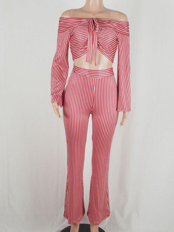 Lovely Sexy Bateau Neck Striped Red Two Piece Pants Set