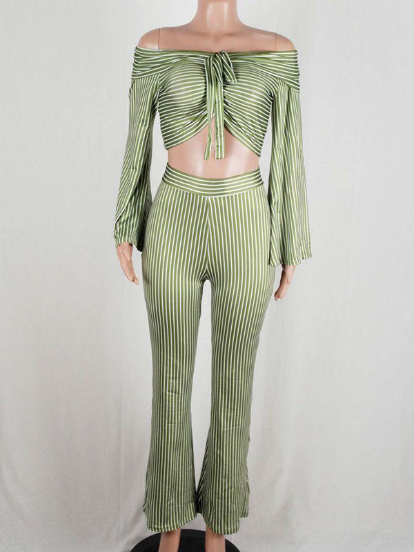 Lovely Sexy Bateau Neck Striped Green Two Piece Pants Set