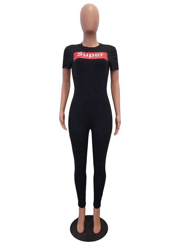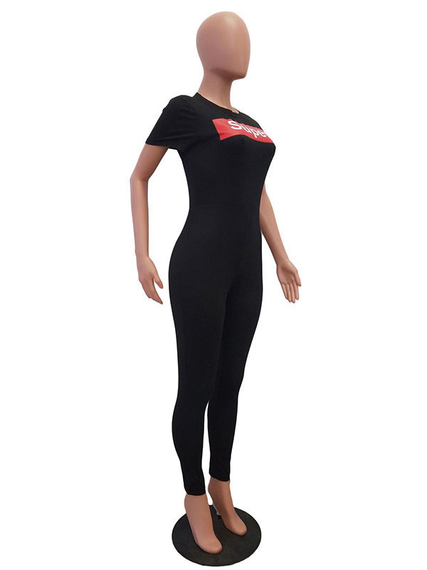 Home » Jumpsuit & Romper » Jumpsuit » Front Letter Print Solid Short Sleeve Jumpsuit Black
