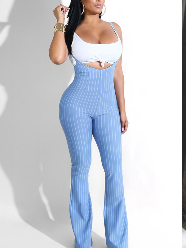 Home » Jumpsuit & Romper » Jumpsuit » Women Stripe Sleeveless High Waist Jumpsuit Blue