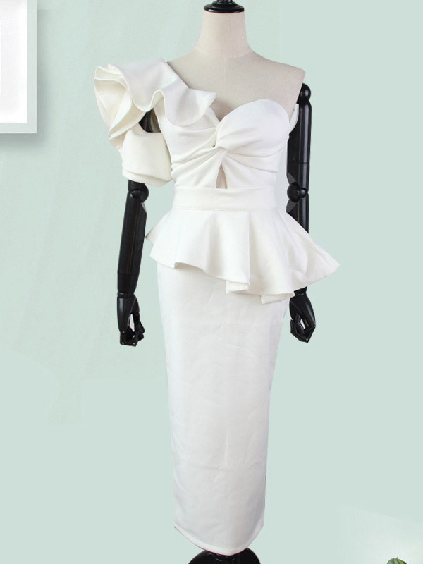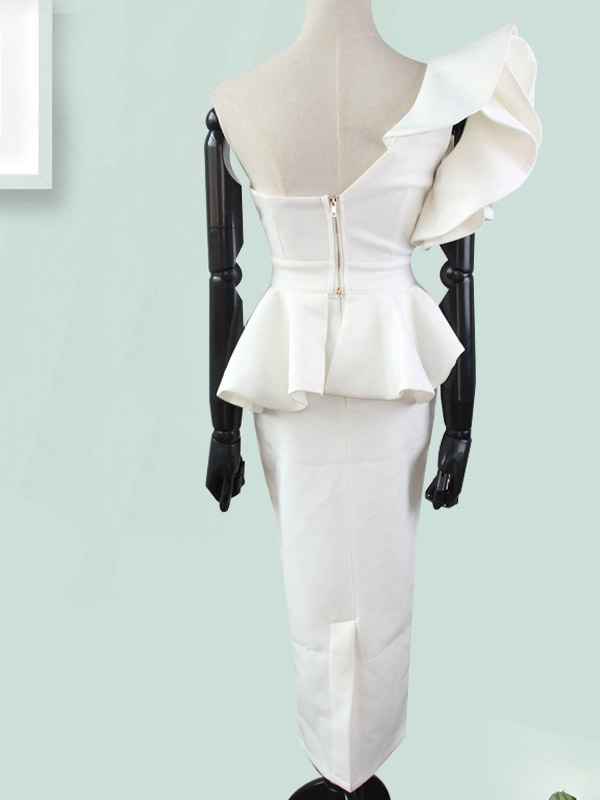 Home » Bandage Dresses » One Shoulder Ruffle Bandage Dress White