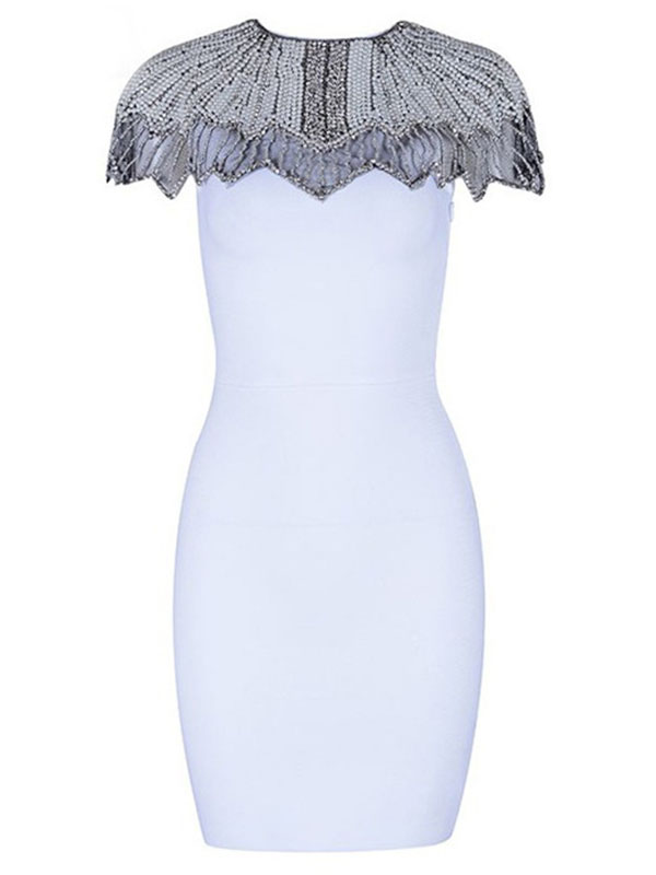 Home » Bandage Dresses » Women Solid Party Bandage Mini Dresses White
