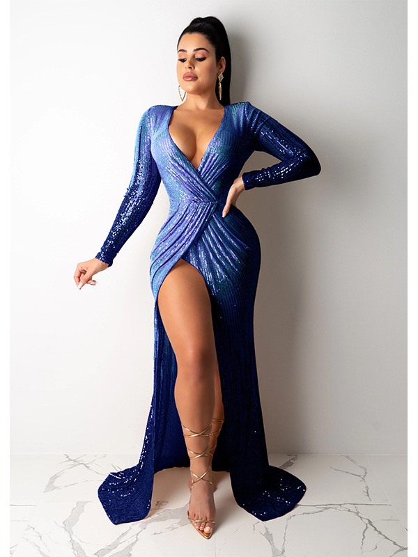 - Women Sexy Long Sleeve Evening Dress