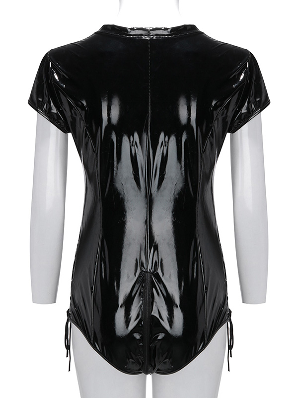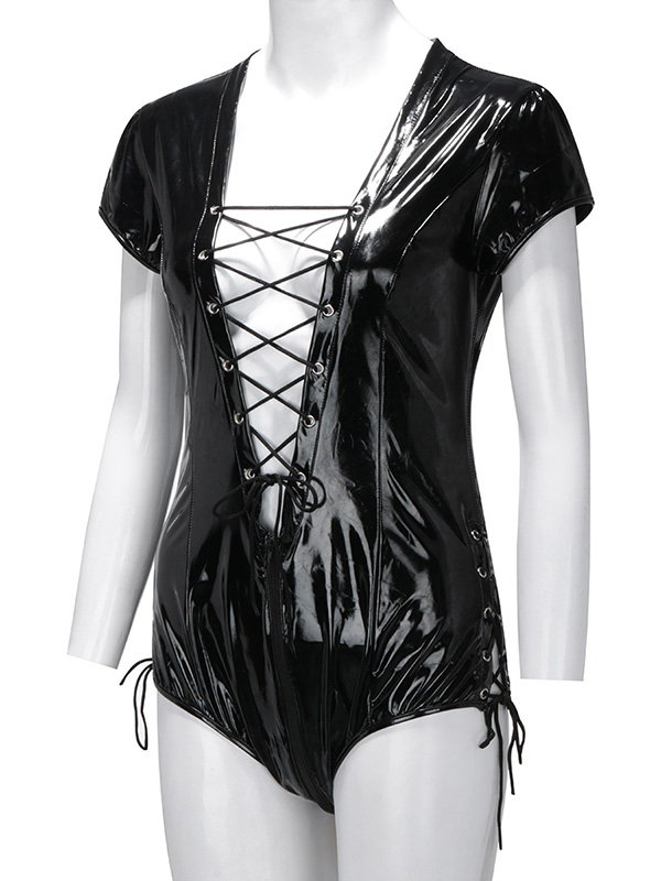 Women Lace Up Vinly Teddies Lingerie