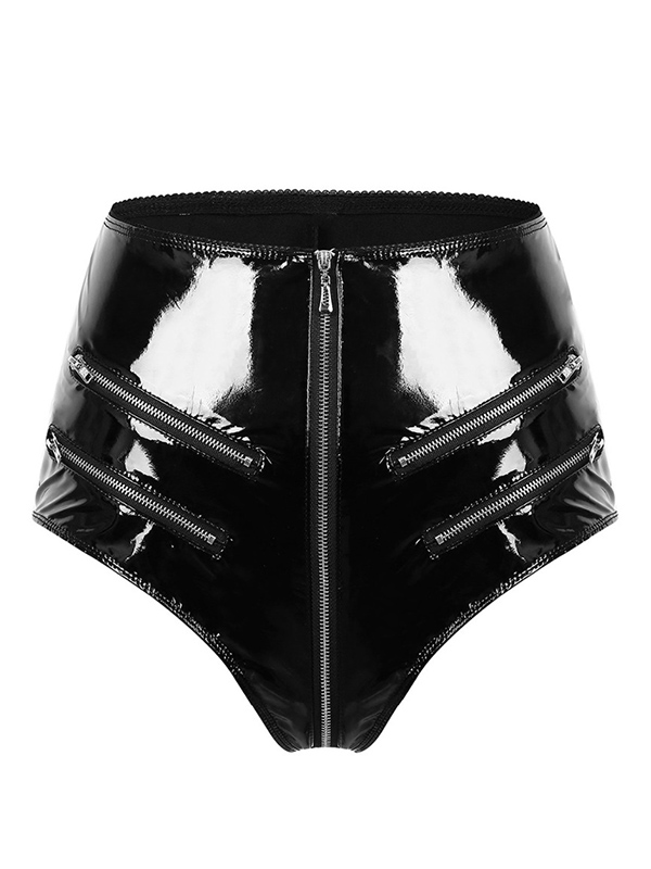 » Wet Look & Vinyl Clothing » Vinyl lingerie Set » Womens Wetlook Summer Sexy Pole Dance Leather High-Waisted Front Zip Up Booty Shorts Hot Pants for Night Cocktail Party