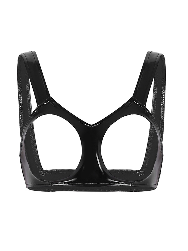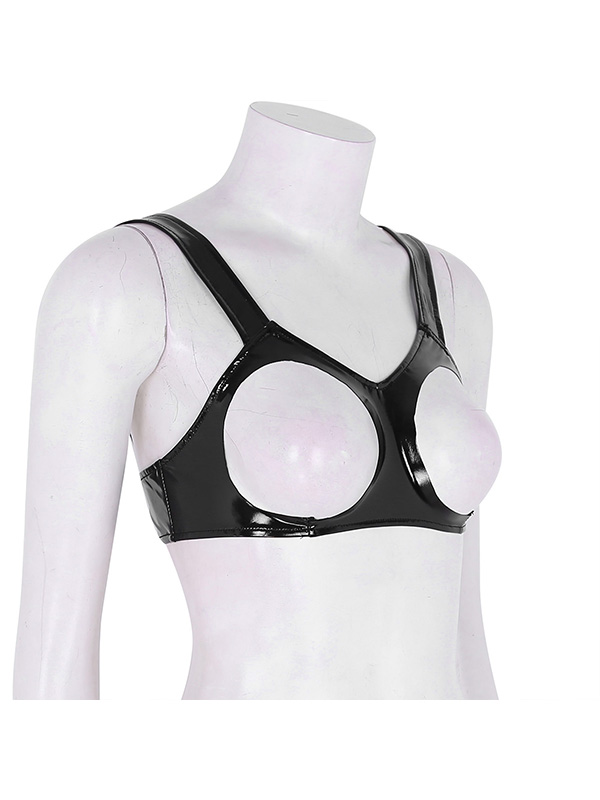 » Wet Look & Vinyl Clothing » Vinyl lingerie Set » Sexy Clubwear Women Wet Look Leather Bustier Latex Mini Bra Porno Open Cups Bra Underwear Female Hollow Out Nipples Unli
