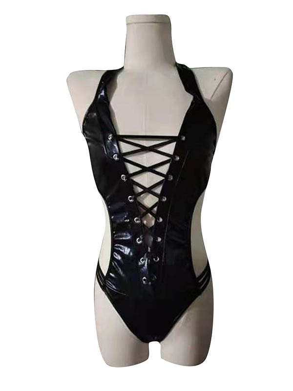 Home » Wet Look & Vinyl Clothing » Vinyl lingerie Set » Women Faux Leather Lace Up Teddies Lingerie