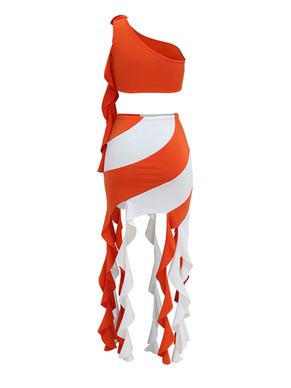 Women Patchwork Bodycon Midi Tassel Skirts Set