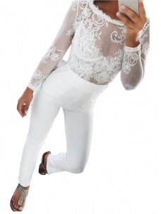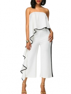 White Dew Shoulder Lace Trim Patchwork Jumpsuits W650205A